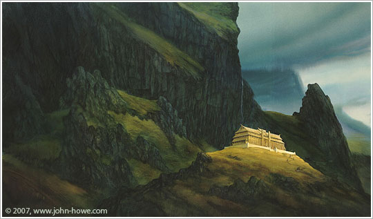 La reggia di Heorot, sfondo della maggior parte del poema e simbolo della ricchezza di Hroðgar (John Howe)