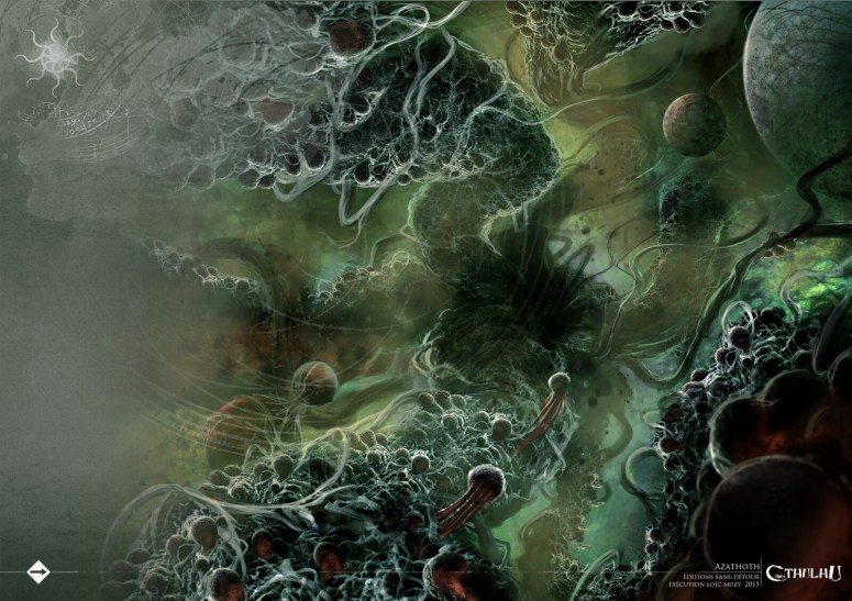 Ma quello più spaventoso e importante è Azathoth: cieco e idiota, privo dell’intelletto, che forse ha avuto ma ha perduto, Azathoth risiede al centro del cosmo e si agita eternamente in una folle danza permessa dal suono del flauto dei suoi servitori…oppure sogna di farlo, e la musica serve a tenerlo assopito. Quel che è certo è che, se questa condizione cambiasse, e lui interrompesse ciò che sta facendo, anche solo per un istante, il cosmo intero collasserebbe.