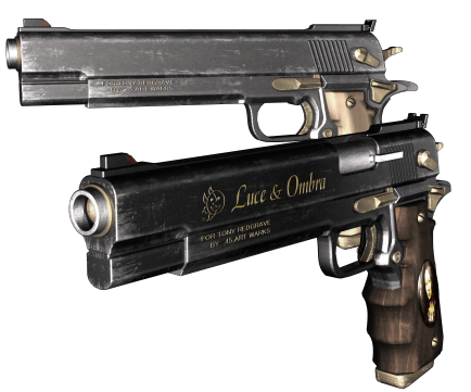 Un sole e una luna sono visibili anche sulle pistole “Luce” e “Ombra”, appartenute a Sparda, che le utilizza come costume sbloccabile/personaggio alternativo in Devil May Cry, e poi armi di Trish in Devil May Cry 2 e 4 (Special Edition).