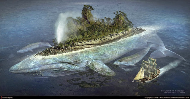 Quello della balena-isola è un tòpos che appartiene più alla letteratura e alla leggenda che al mito, come molte altre figure presentate nelle pagine precedenti, e figura in molti racconti di mare in varie parti del mondo. Già nel mondo antico, Plinio il Vecchio, nella Naturalis Historia, descrive animali marini di immani dimensioni (IX, 4):