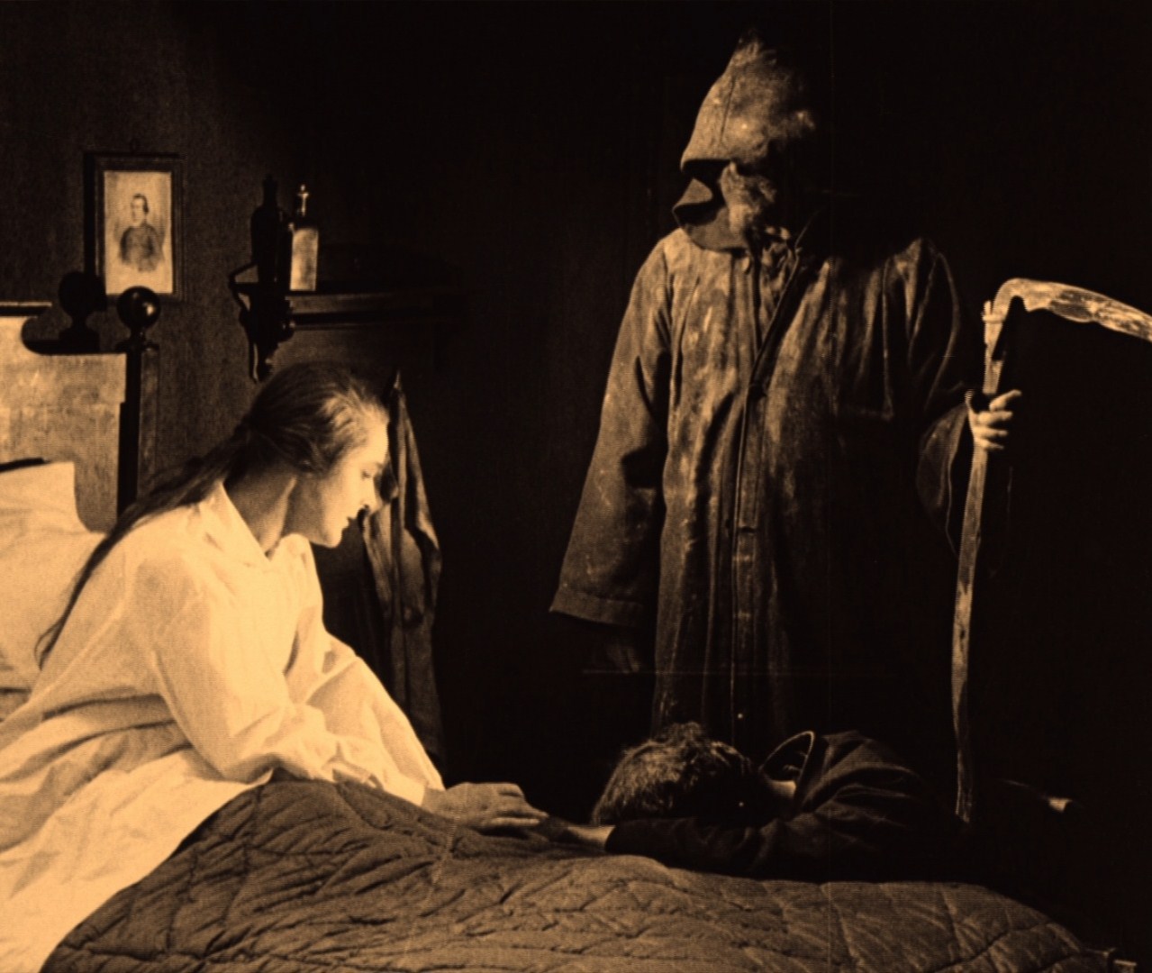 Il film racconta, come le varie leggende su Ankou, di un furfante privo di moralità, David Holm (interpretato dallo stesso regista), che riesce a trovare redenzione in maniera insperata, proprio grazie all’incontro con il carro dei morti. Non viene fatto il nome Ankou, e il carrettiere mantiene sembianze assolutamente umane, ma attraverso l’aspetto spettrale del carro, realizzato con un effetto di trasparenza che non mi sarei aspettato in un film così vecchio, l’abito nero e la falce del carrettiere, possiamo davvero sentire il peso di un’antica leggenda raccontata ancora una volta grazie ad un nuovo mezzo, il cinema.Tutto comincia la notte del 31 dicembre sul capezzale di Edit (Astrid Holm), una suora laica che sta morendo di tubercolosi. In un momento così drammatico il suo pensiero si rivolge a David, e il suo massimo desiderio è poterlo vedere un’ultima volta: come apprendiamo nel corso del film, Edit ha cercato per tanto tempo di redimerlo e indirizzarlo verso la buona strada, ma lui ha risposto negativamente a ogni suo tentativo. La persona inviata a chiamarlo lo trova al cimitero, intento a bere acquavite con due compagni per festeggiare Capodanno. A loro David racconta una storia, che anni prima gli è stata raccontata da un vecchio amico, Georges (Tore Svennberg), sul quale si apre una serie di flashback, su un vecchio incontro di lui e David prima e sull’occasione in cui, il Capodanno di due anni prima, questi ha raccontato a lui e a un altro amico la storia del carretto fantasma, che viene mostrato in un flashback nel flashback: il film opera qui un sorprendente gioco di racconti dentro i racconti, aprendo parentesi dentro parentesi e riuscendo a dirigerle senza che si perda il filo. Altra cosa che non mi sarei aspettato, in un film di quegli anni.
