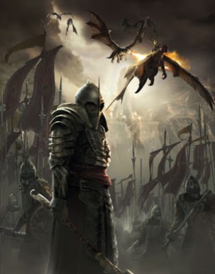 Unico in entrambi gli eserciti, almeno per quello che vediamo, è il drago di Atta-Kai, che sceglie Rohn come suo cavaliere dopo la morte del primo. Si tratta di un drago sanguinario (Blood Dragon), appartenente a una razza feroce e molto riverita, che prende il suo nome dalle macchie rosso sangue che ha sulla testa, e dagli screzi dello stesso colore sulle ali. Il drago sanguinario è uno dei draghi più grandi, ma è leggero, senza la robustezza dei draghi oscuri, e pensato per essere veloce senza rinunciare a un po’ di forza in più. Il suo corpo, la cui livrea fatta di varie gradazioni di grigio ricorda quelle di molte ricostruzioni dei dinosauri, è scattante e ricorda quello di un levriero, mentre le ali hanno una membrana abbastanza stretta, e ai lati del primo tratto di coda si trovano disposti spuntoni laterali, come quelli sui fianchi di Ankylosauridi come Polacanthus. La testa ha una forma molto caratteristica: mascella superiore stretta e mandibola larga, ha due grosse zanne alla fine di entrambe, e sulla parte centrale del muso una cresta a forma di falce, piegata verso l’indietro, che sembra avere un aspetto aerodinamico e che probabilmente cambia colore nel periodo degli accoppiamenti (no, questa è pura speculazione fine a sé stessa, mi sto prendendo in giro da solo e sono abituato a congetture del genere proprio per via di tutti quei documentari sui dinosauri).