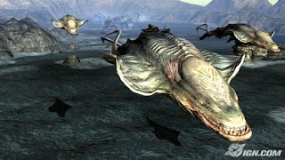Si tratta dunque di un mondo dove la natura è ancora potente, e dove i grandi animali sono ancora diffusi. I grandi predatori, poi, sono completamente indomabili: in un livello, forse il mio preferito, si riceve l’attacco di quello che viene chiamato “Coral Snake” (Serpente Corallino), un serpente marino la cui sola testa ha, rispetto al drago, le stesse dimensioni che ha quest’ultimo rispetto a un uomo. È in grado di azzannare quelle enormi mante e trascinarle in acqua per divorarle, e quando viene danneggiato le sue squame rilasciano in aria una specie di sostanza oleosa che danneggia i draghi. In un altro livello bisogna invece affrontare lo Spiderwasp (ragno vespa), che nel doppiaggio italiano è diventato “aracnodittero”, un insetto grosso sì e no quanto la testa del serpente marino che attacca violentemente con le sue grosse tenaglie e rilascia sciami di sua progenie.