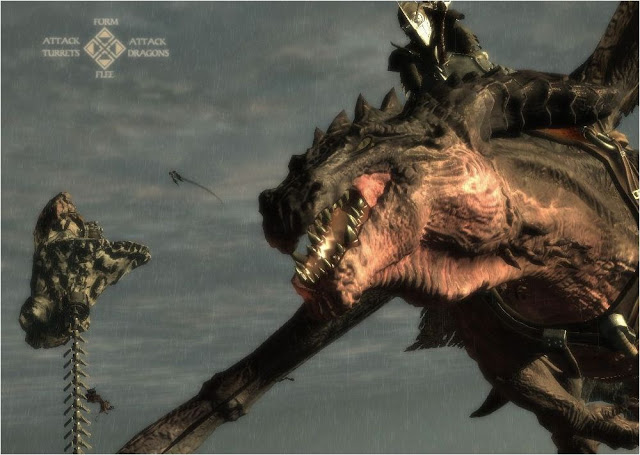 Ma mentre elaboravo il post ho notato anche un’altra cosa, e ad essa mi riferivo quando ho parlato di scopo: il modo in cui Lair funziona come opera epica fantasy di piglio cinematografico, in grado non sfigurare davanti al modello supremo jacksoniano, senza peraltro rientrare nello stesso ambito e senza dovere tanto alle storie della Terra di Mezzo per la sua ambientazione. Queste creazioni artistiche permettono l’immersione in mondi che catturano la nostra fantasia, ma in più ci assaltano con quel senso di antica bellezza e monumentalità tali da ispirarci non solo piacere e meraviglia, ma anche autorità e ammirazione.