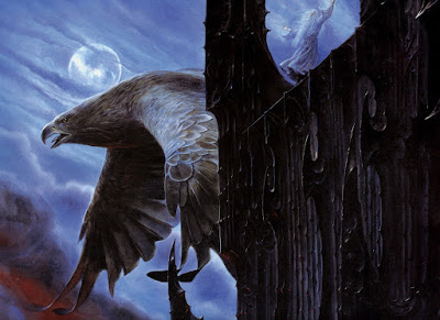 Le Aquile (Eagles) nell’aspetto non differiscono dalle nostre aquile reali, se non per essere così grandi da trasportare un essere umano nelle zampe. Potremmo tracciare paragoni con il Roc delle Mille e una Notte, ma non occorre spingersi così lontano, pensando a quanto frequentemente le aquile ricorrano nella letteratura norrena, come compagne di Odino, o animali del campo di battaglia che divorano i cadaveri, una delle figure più ricorrenti dell’immaginario poetico. E soprattutto abbiamo Hræsvelgr, l’aquila gigantesca che sta sulla cima di Yggdrasill a rivolgere insulti a Niðhöggr, il serpente che ne rode le radici. Essa è un gigante trasformato, e probabilmente è l’immagine da cui derivano le enormi Aquile della Terra di Mezzo.