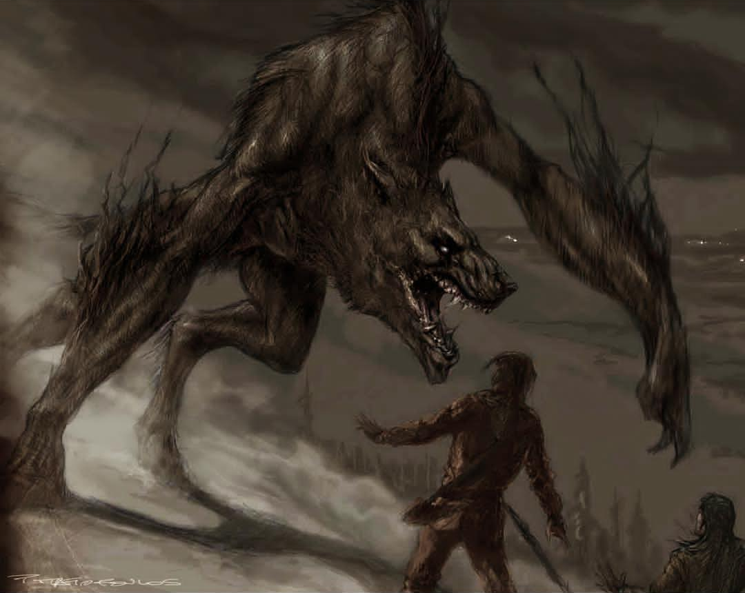 | Un licantropo gigantesco, concept art di Patrick Tatopoulos. |