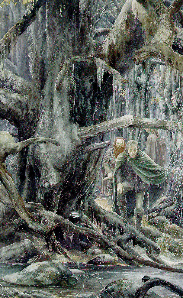 | I tre cacciatori nella foresta di Fangorn, Alan Lee. |