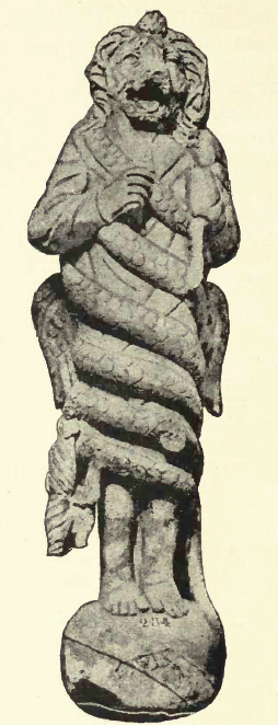 | Leontocefalo, figura divina con testa di leone e attributi serpentini, raffigurante una divinità mitraica, in un’illustrazione del libroMysteries of Mithra, 2008. |