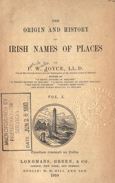 Joyce, Patrick Weston, The Origin and History of Irish names of places, McGlashan & Gill, Dublino, 1875, pp. 61, 319-20.